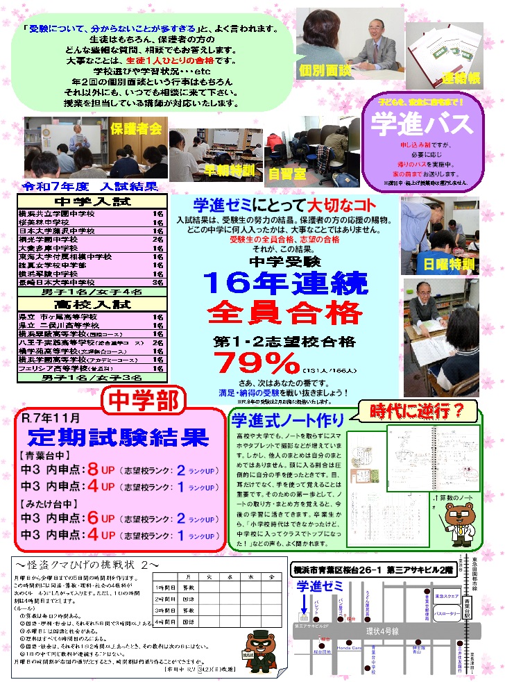 | 青葉台中 | 中3 | 4ptUP | 1ランクUP | ||